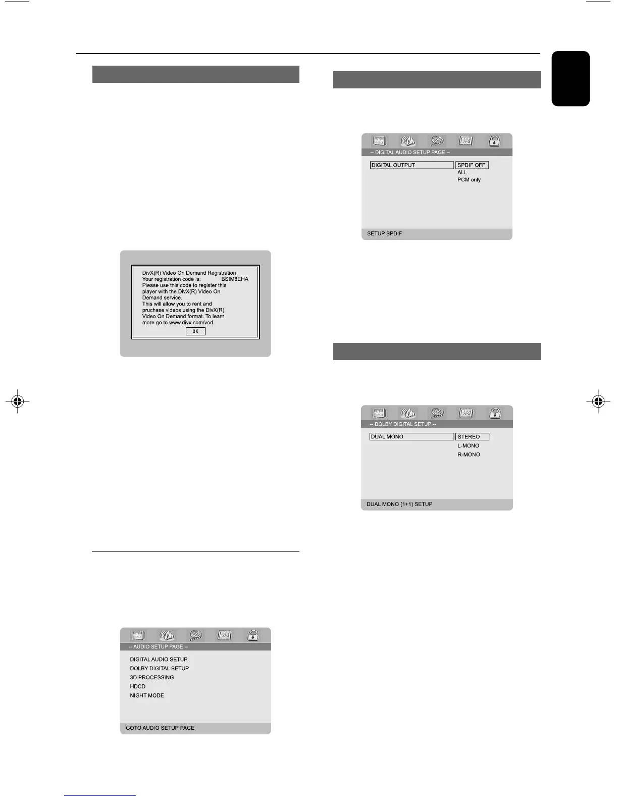 “Digital Audio Setup”, “Dolby Digital Setup”, “3D