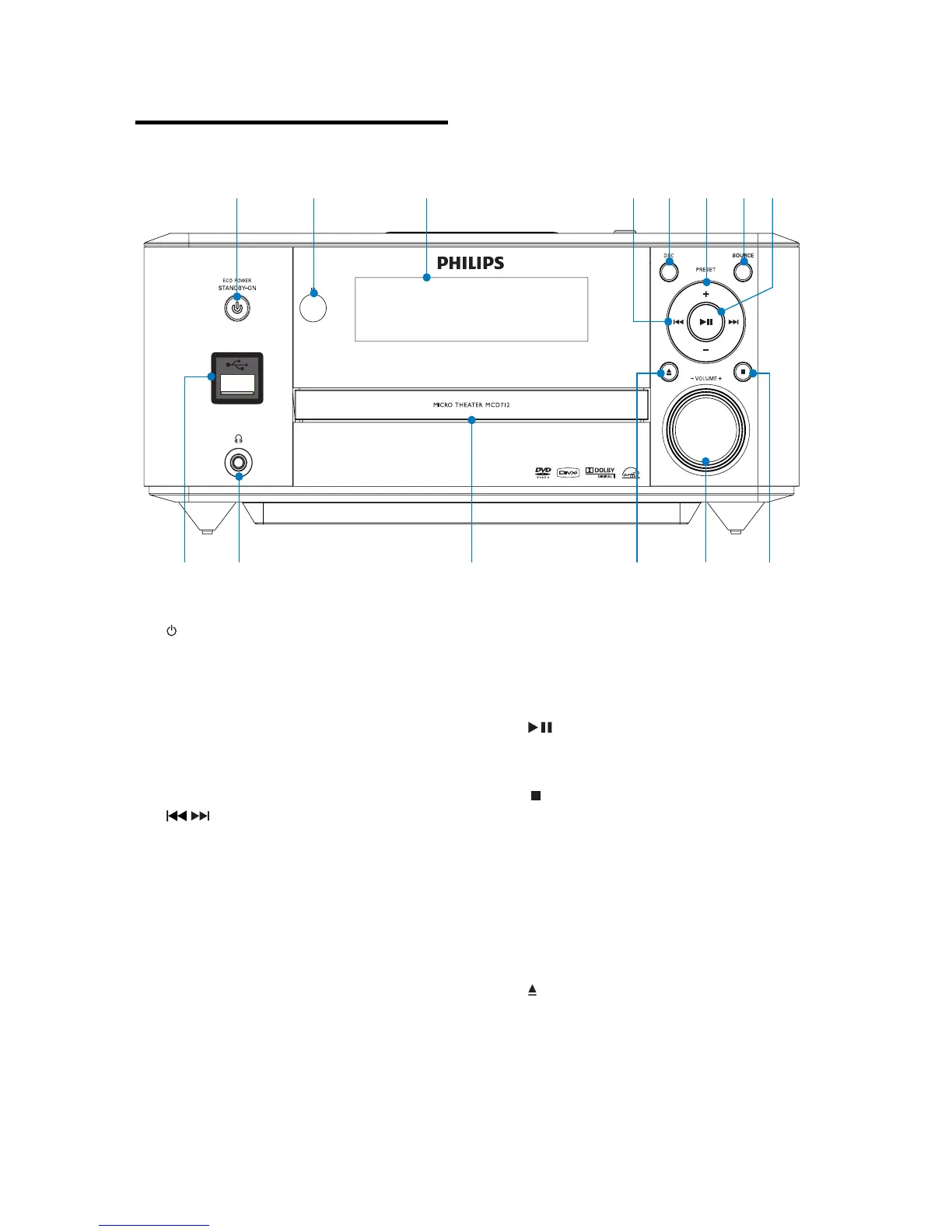 Hiermee schakelt u het apparaat •
