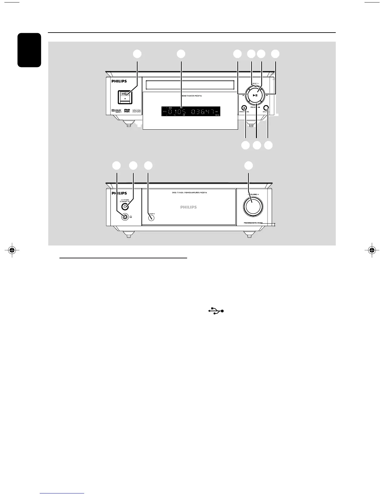 – in tuner mode, selects a preset radio station