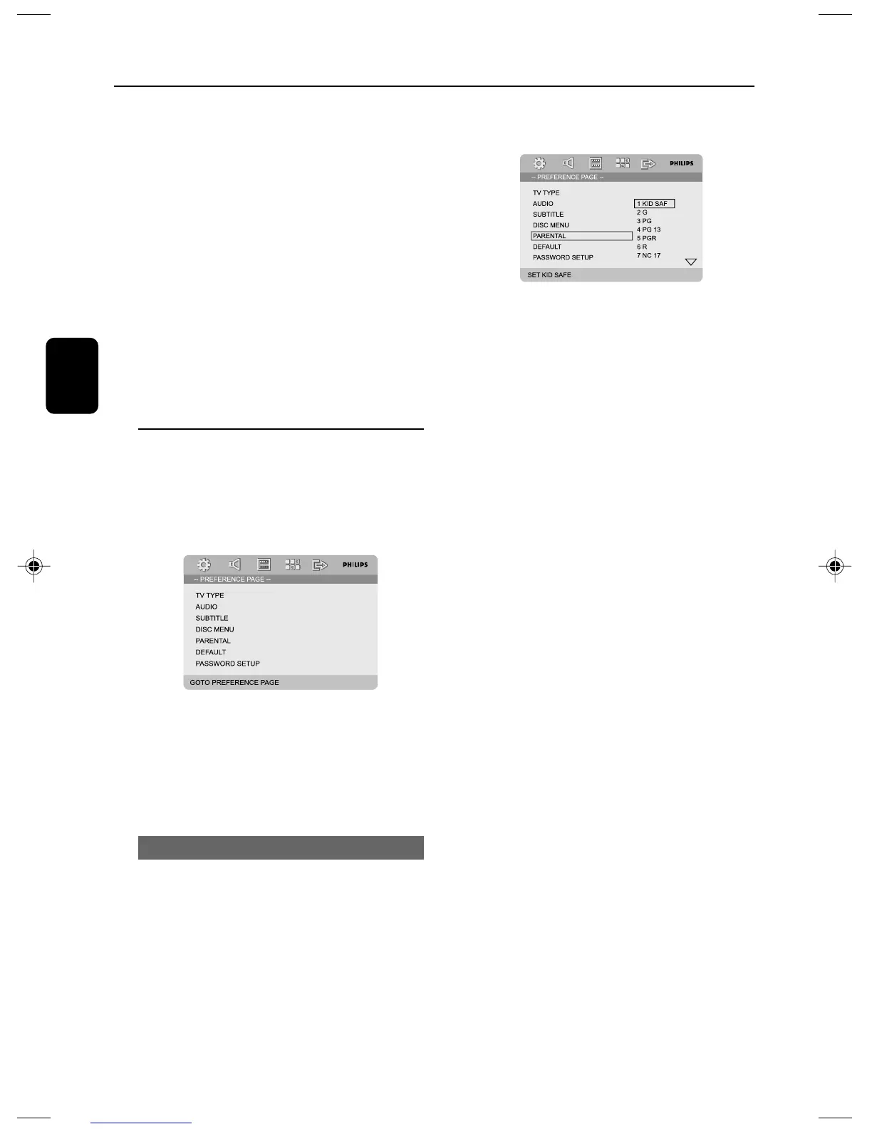 “DISC MENU”, “PARENTAL” und “DEFAULT”.