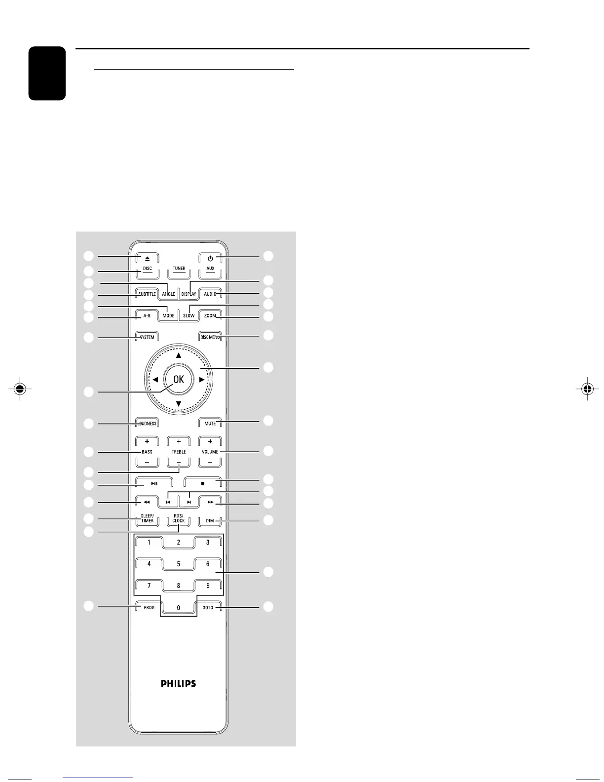 –DVD/VCD/CD: enters the program menu.