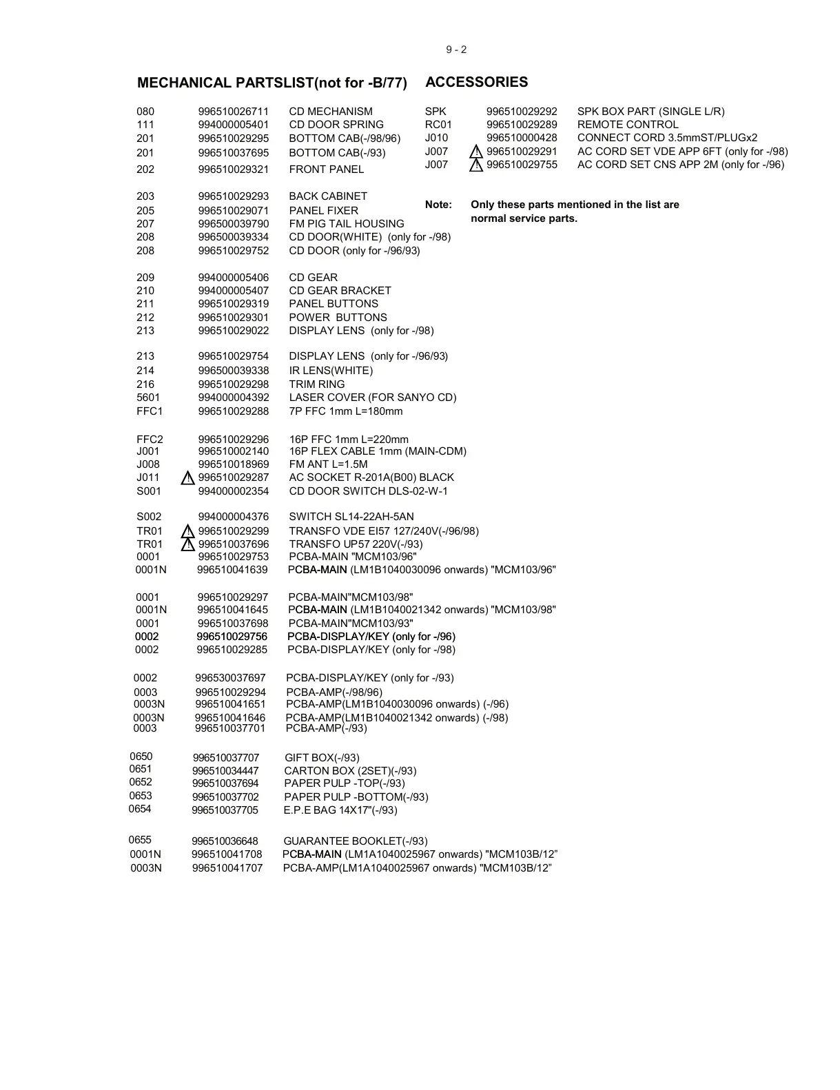 0001N 996510041708 PCBA-MAIN (LM1A1040025967 onwards)CBA-MAIN "MCM103B/12”