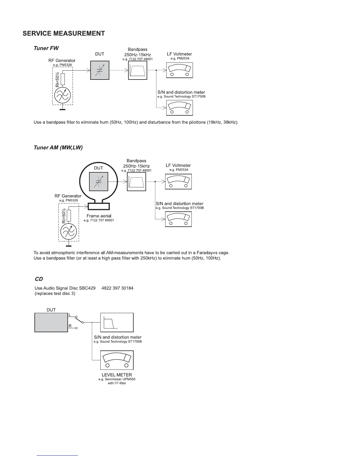 Philips MCM128B - Service Measurement Procedures; FM Tuner Measurement Setup; AM Tuner Measurement Setup; CD Player Measurement Setup