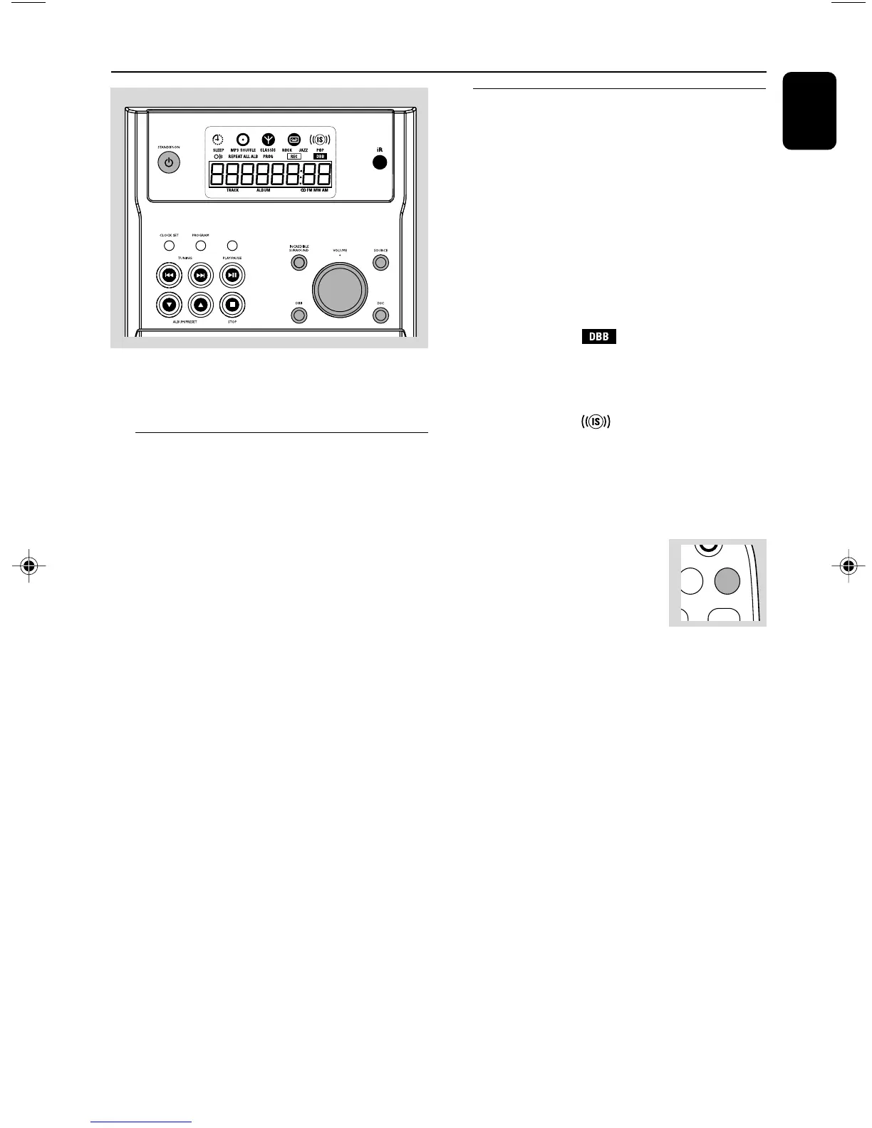 3 Press DBB to switch bass enhancement on or