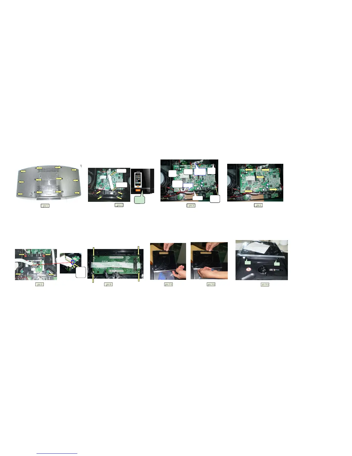 2)Remove the FFC cable on IPOD BD from Main BD,1st get remote control lens out, then remove the 4pcs screws (PA 2.3x8) which fix IPOD BD to discharge IPOD BD;