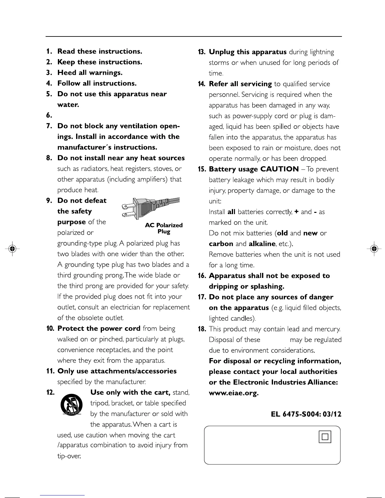 Philips MCM240 - Critical Safety Instructions; Essential Operating Safety Guidelines