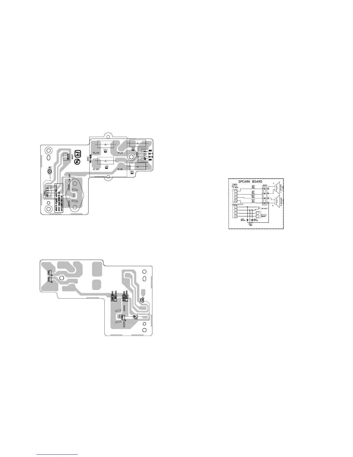 Philips MCM277 - Speaker & Antenna Board; SP & ANT Board Top Side Layout; SP & ANT Board Bottom Side Layout; SP & ANT Board Circuit Diagram