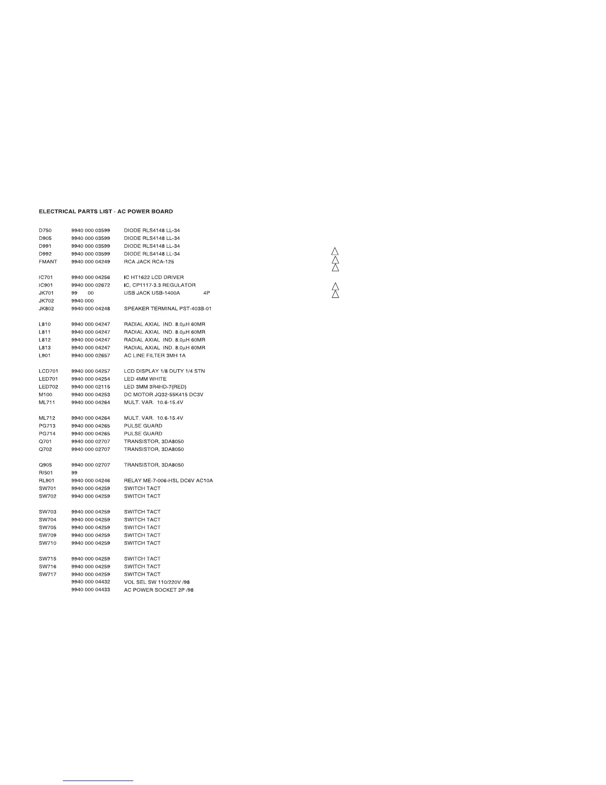 Note: Only these parts mentioned in the list are
