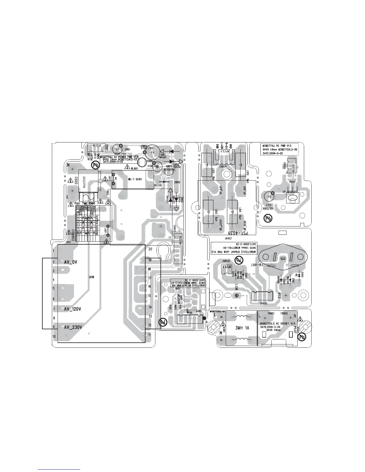 Philips MCM277 - Board PCB Layouts; AC Power, HP Jack, SP & ANT, RC Boards Top View Layout