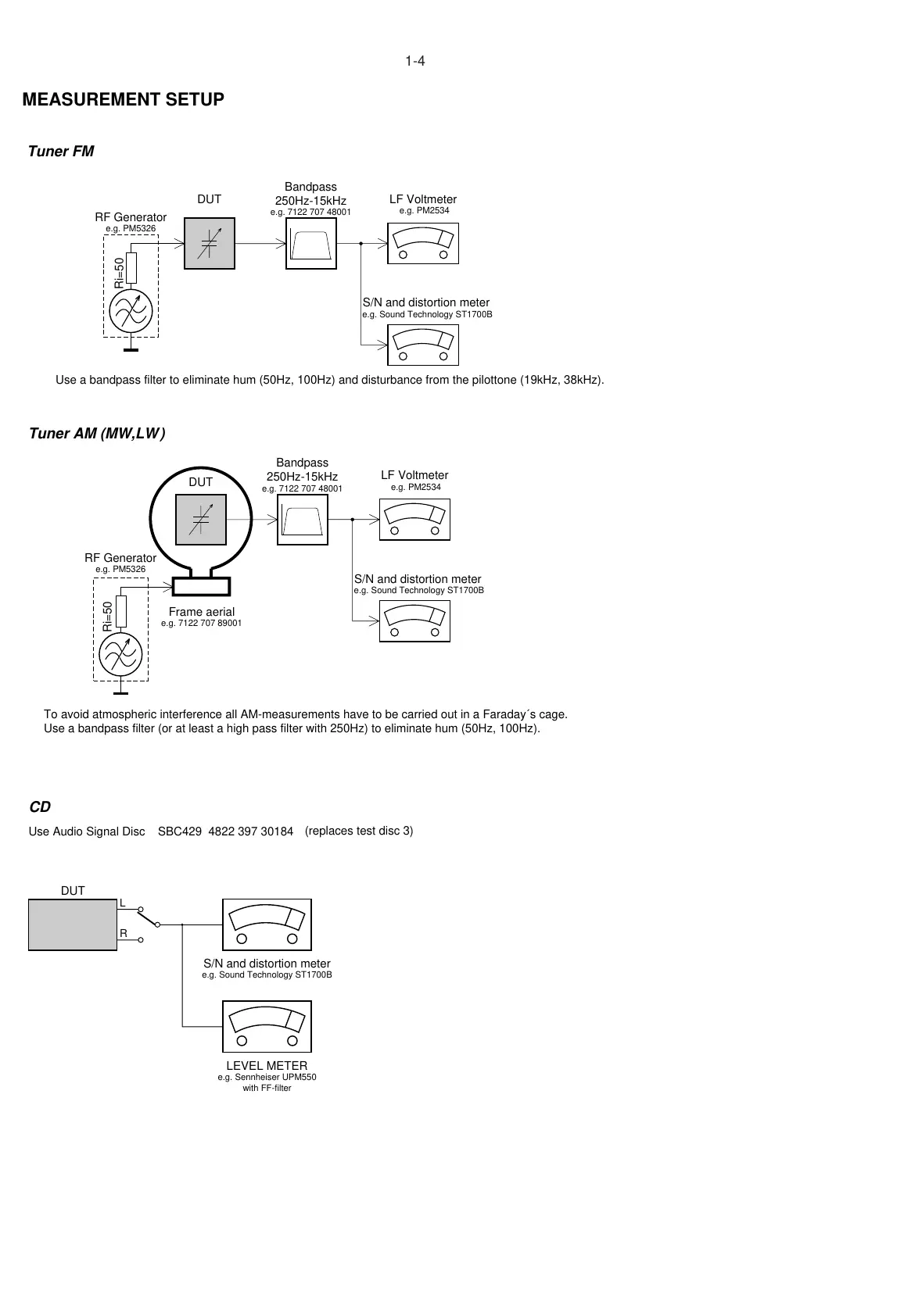 Philips MCM298/37 - Measurement Setup; Tuner FM Measurement Setup; Tuner AM (MW,LW) Measurement Setup; CD Measurement Setup