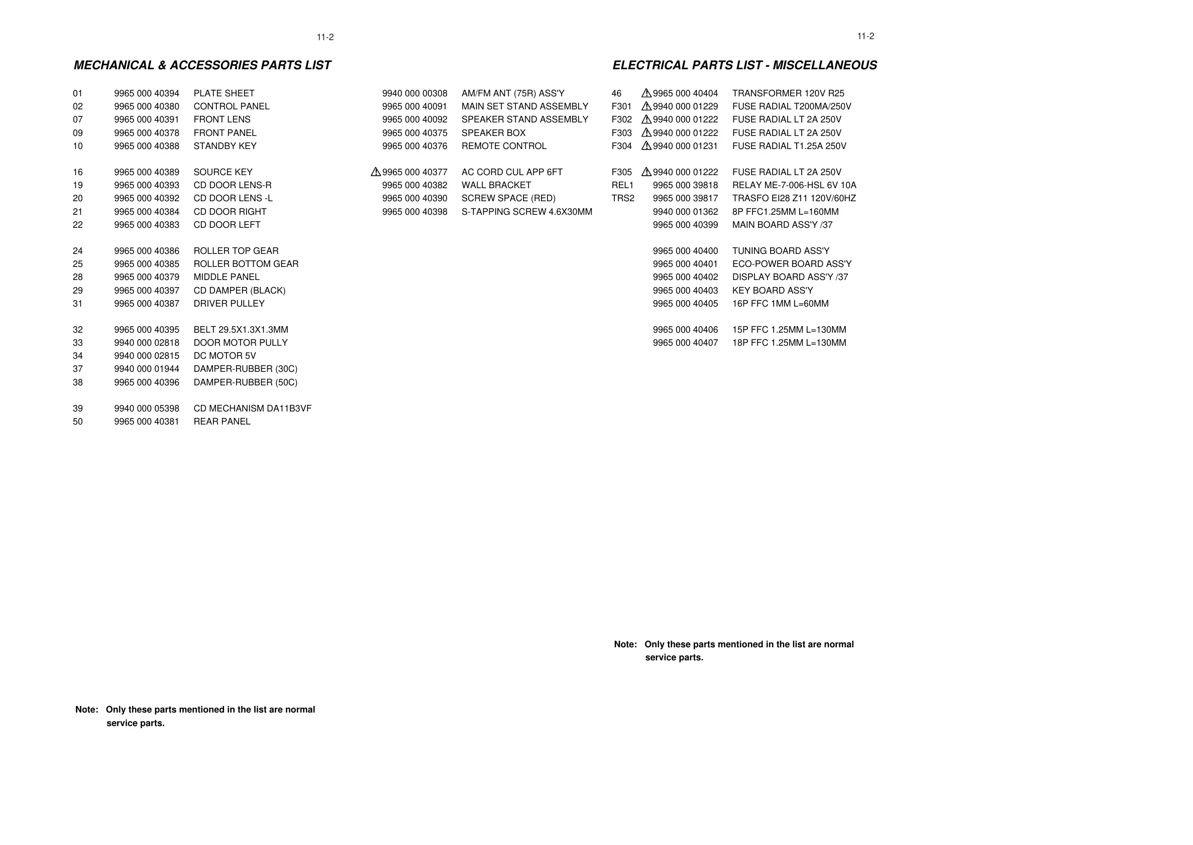 39 9940 000 05398 CD MECHANISM DA11B3VF