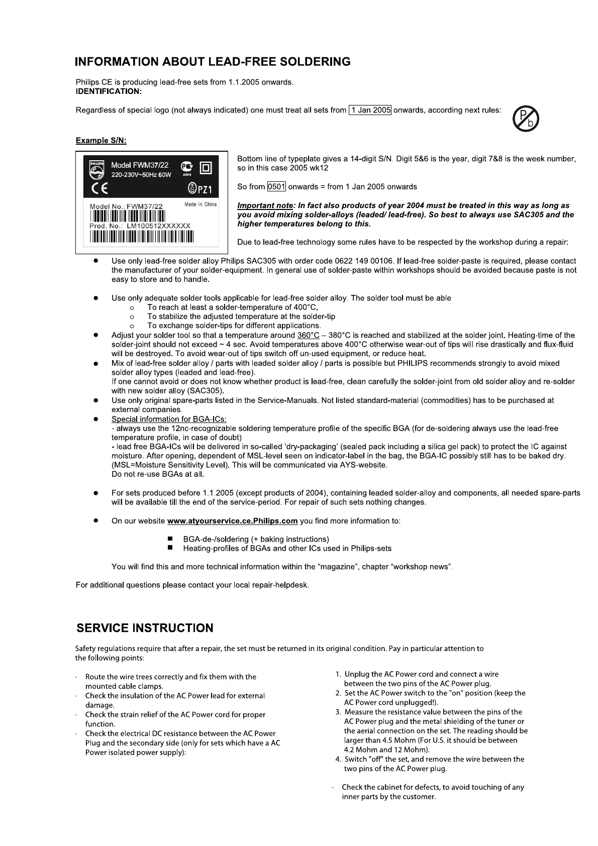 Philips MCM390 - Lead-Free Soldering and Safety; Lead-Free Soldering Information; Service Safety Instructions