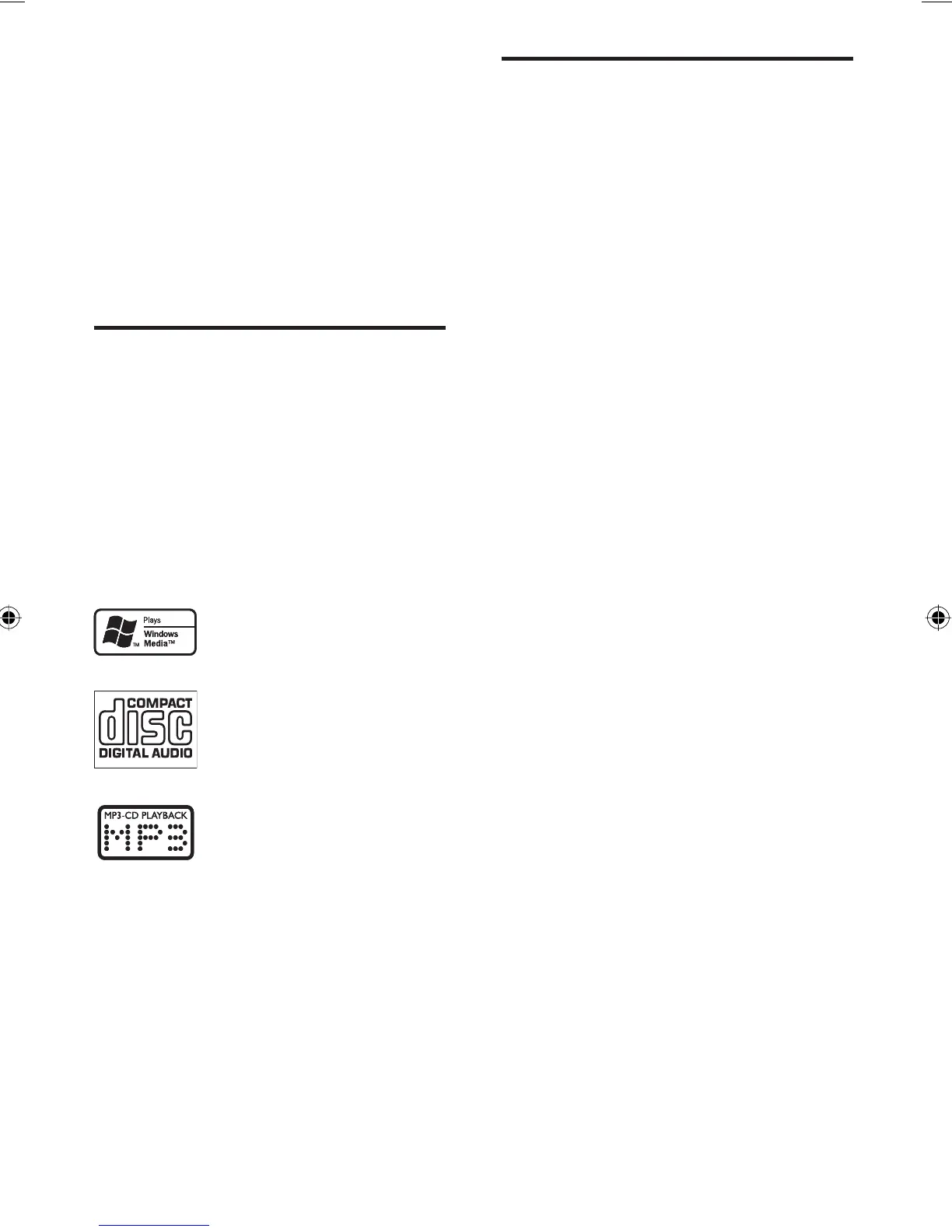 The audio system supports the following media