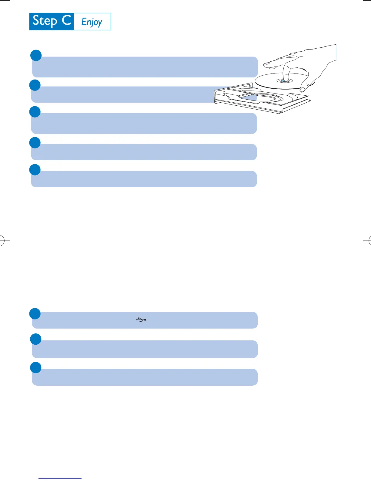 Play the USB’s audio Þ les as you do with the albums/tracks on a CD.