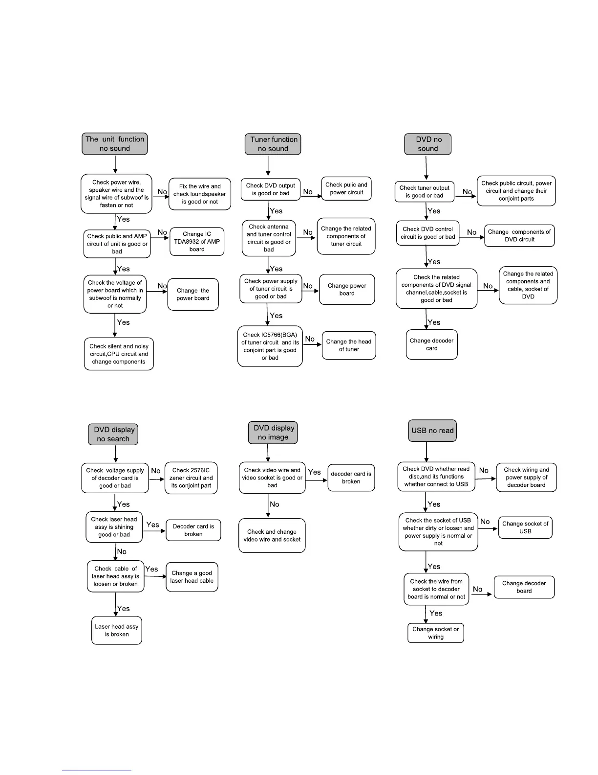 Philips MCM772 - Malfunction Follow Check Chart; No Sound Troubleshooting; DVD No Sound Troubleshooting; DVD Display Troubleshooting