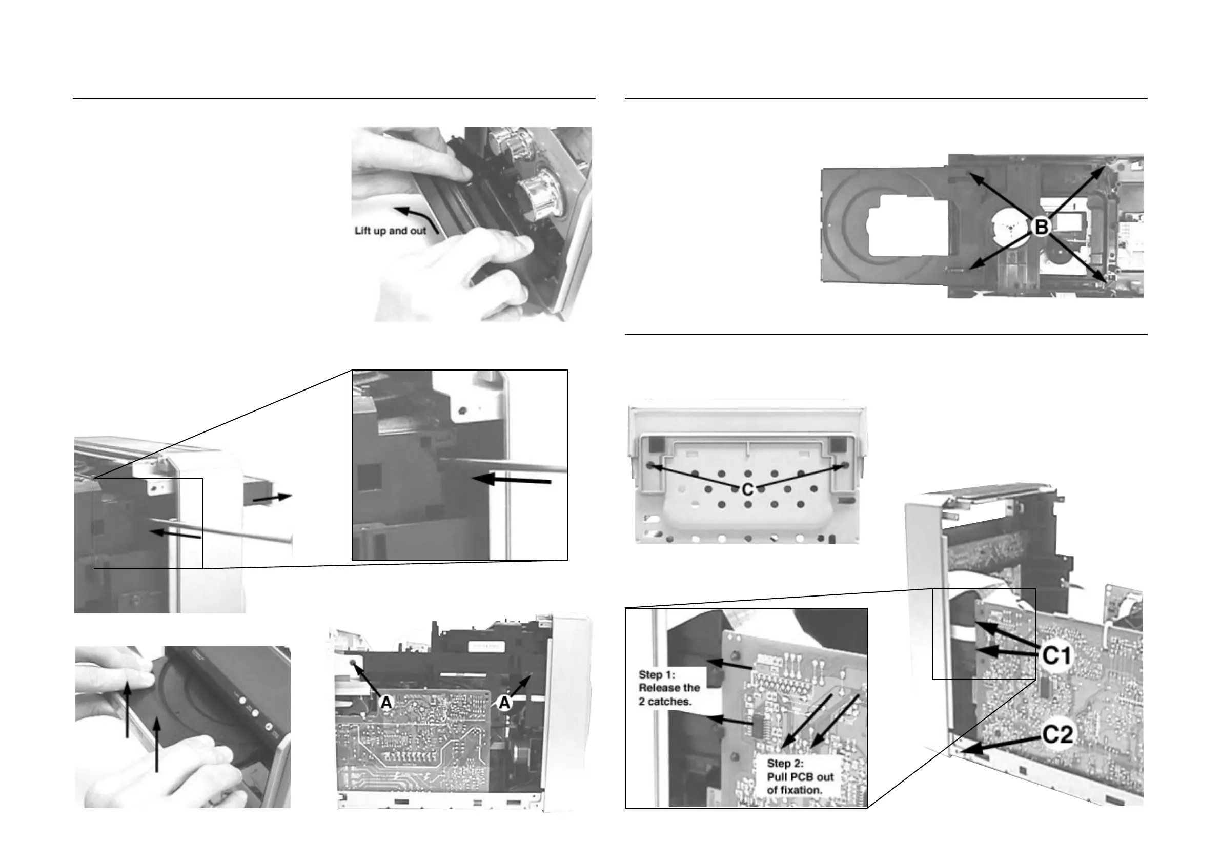 1) Slide out the Loader Tray fully and remove 4 screws B (see