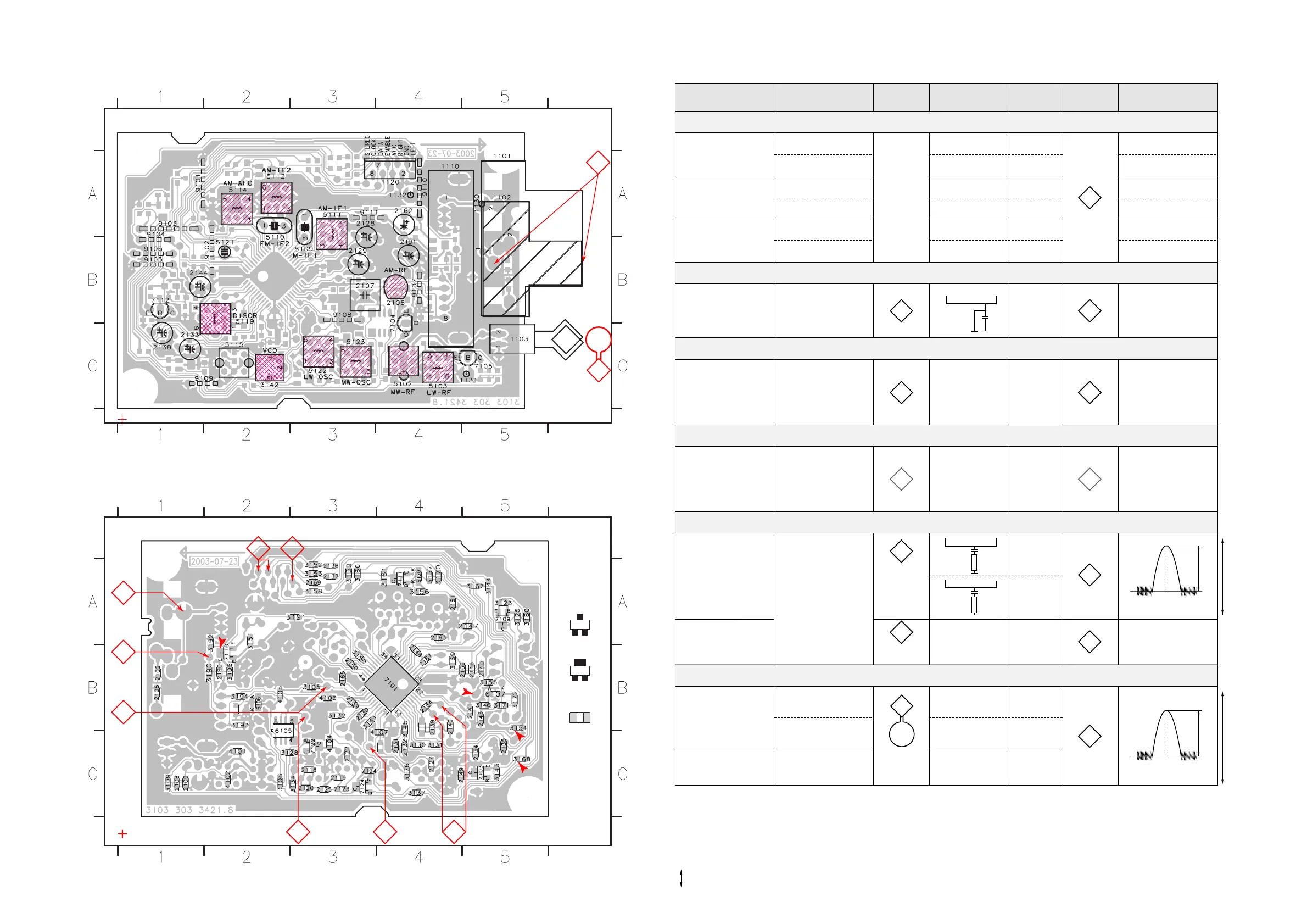 TUNER ADJUSTMENT TABLE