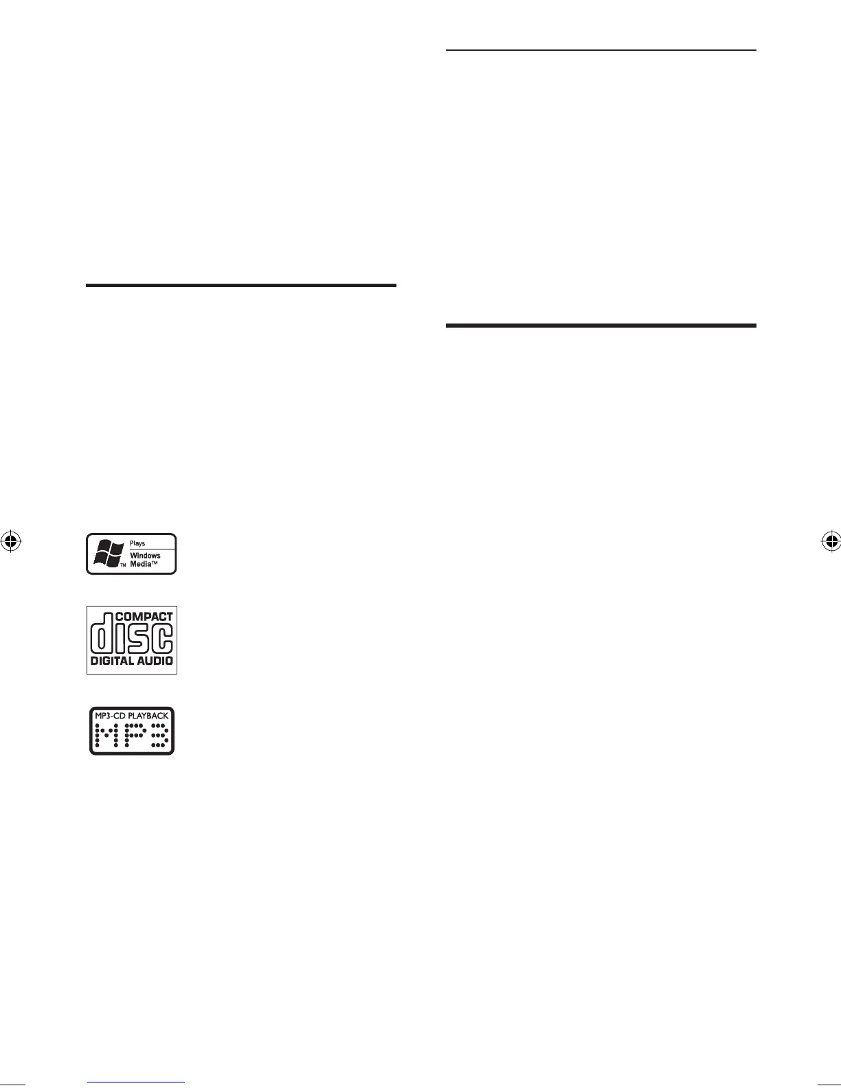 The audio system supports the following media