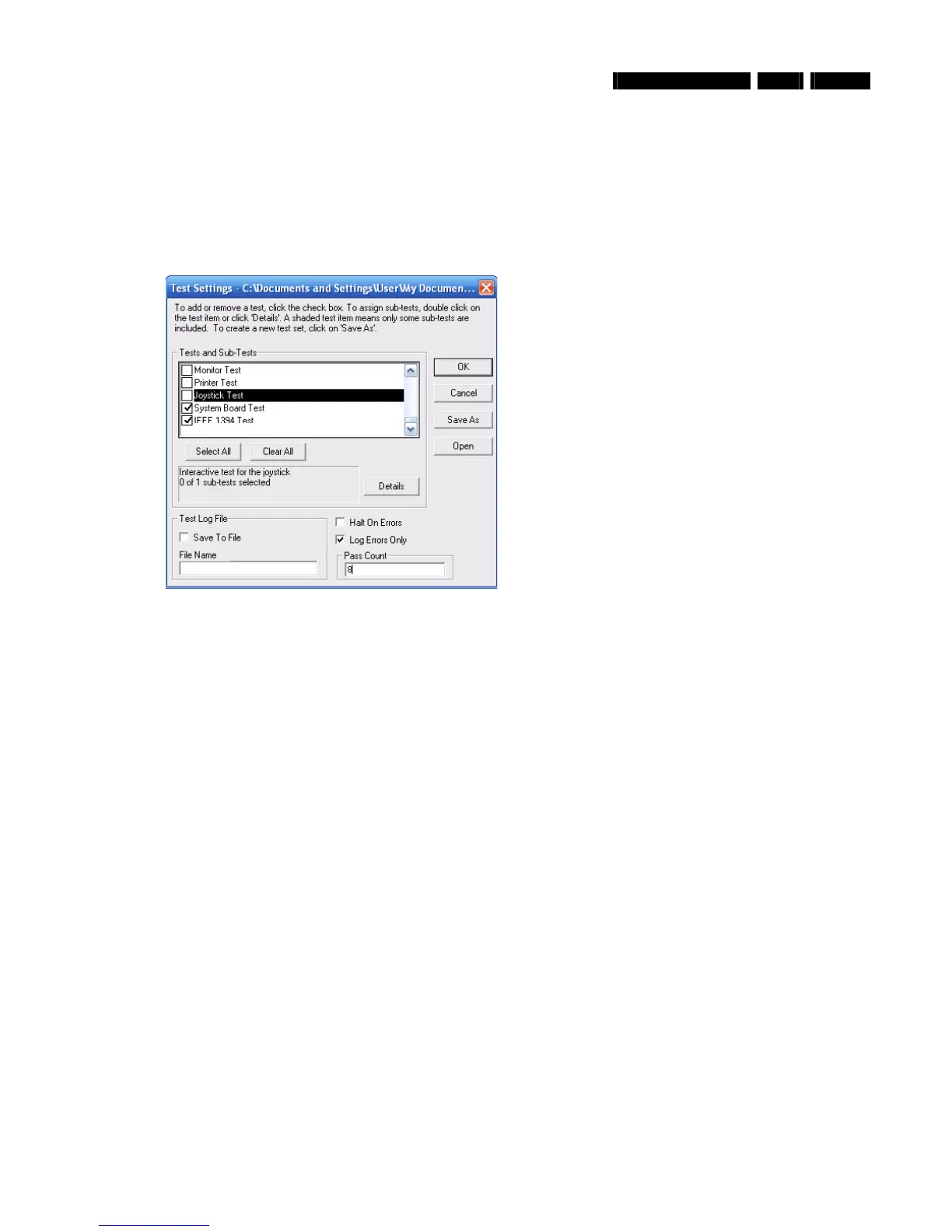 For sets where no repair has been done a check must be made for intermittent faults. In PC Doctor, make sure that the script is