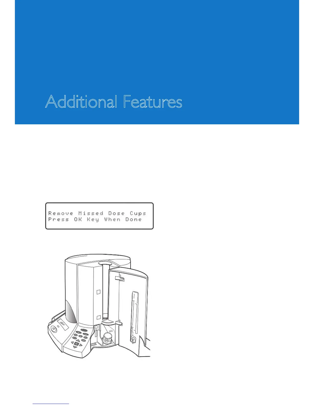 Open the door and remove the missed dose cup(s) from the reserve bin.