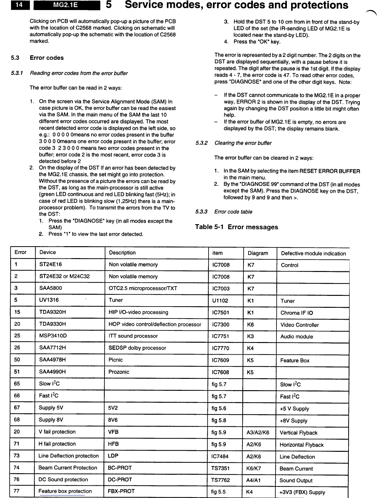 Philips MG2.1E - 5.3 Error Codes and Diagnosis