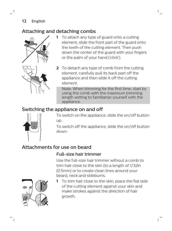 1 To trim hair close to the skin, place the flat side