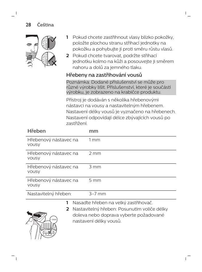 nástaАci na АousГ a nastaАitelným hebenem.