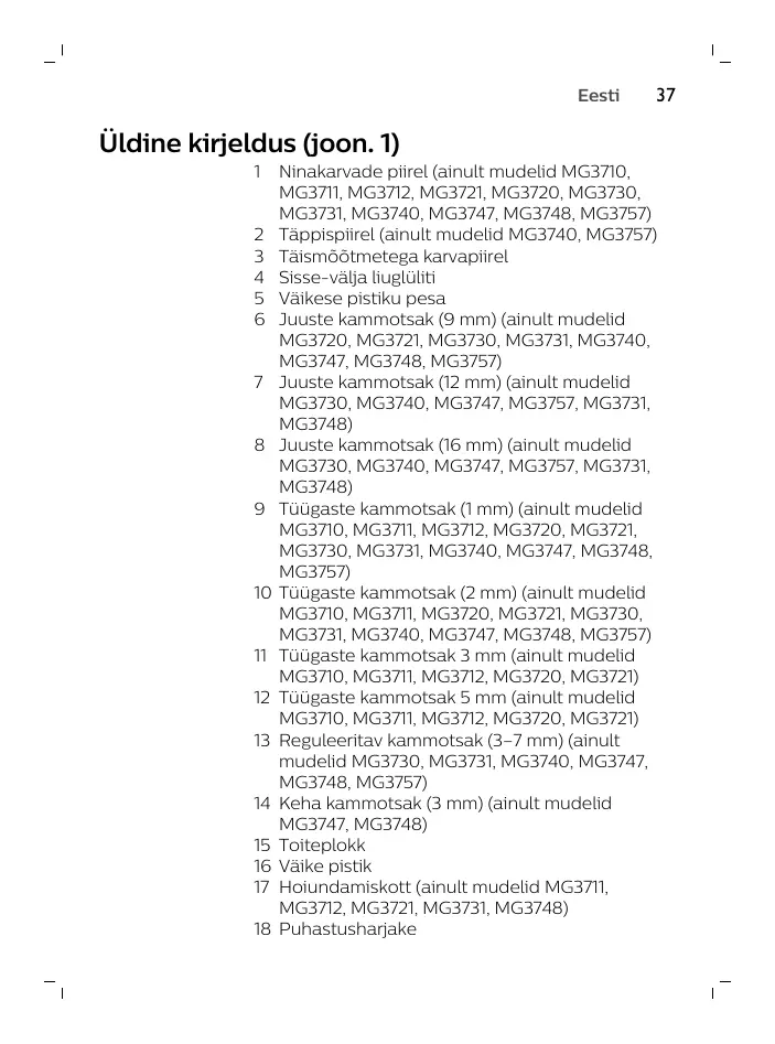 1Š Keha kammotsak (ş mm) (ainult mudelid