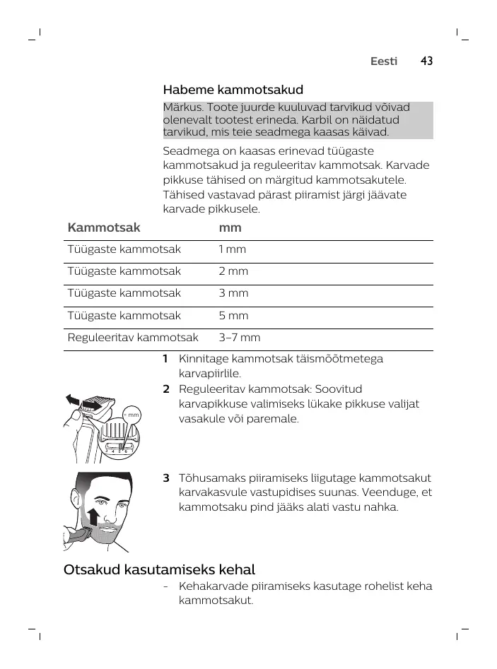 ş Tõhusamaks piiramiseks liigutage kammotsakut
