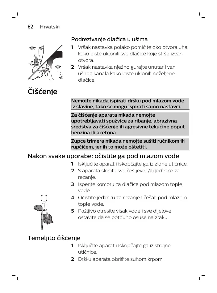 Zupce trimera nikada nemojte suiti ručnikom ili