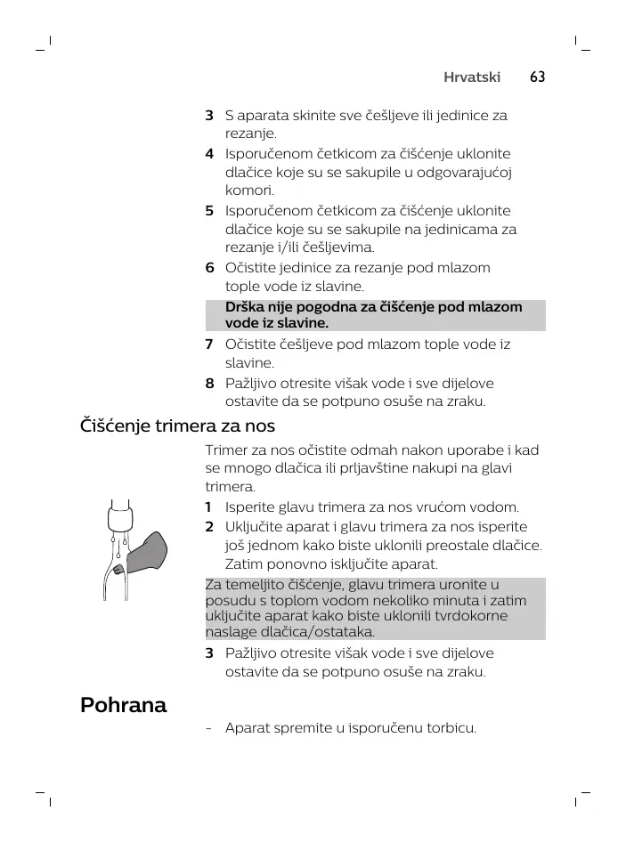 Trimer Дa nos očistite odmah nakonыuporabe i kad