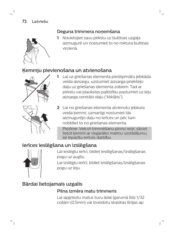 PieДīme. Veicot trimmēanu pirmo reiДi, sāciet