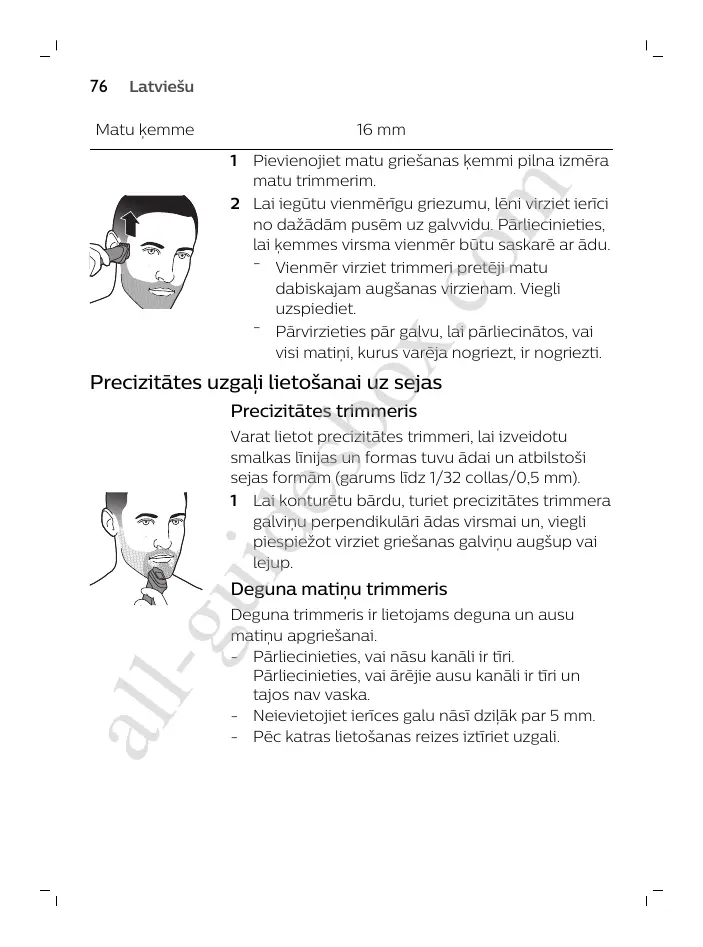 1 Lai konturētu bārdu, turiet preciДitātes trimmera