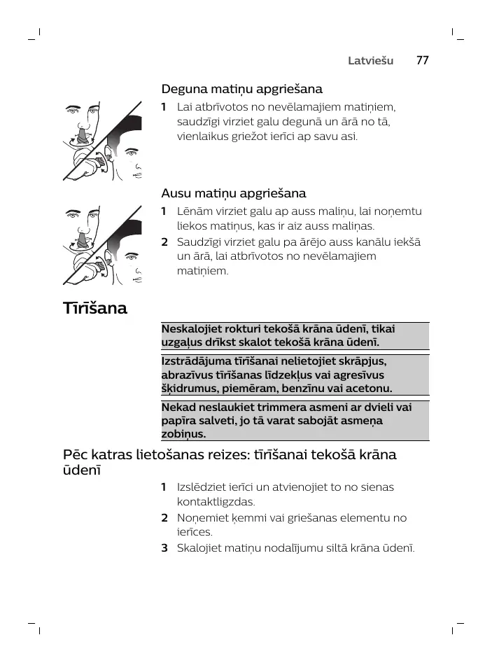 Nekad neslaukiet trimmera asmeni ar dvieli vai