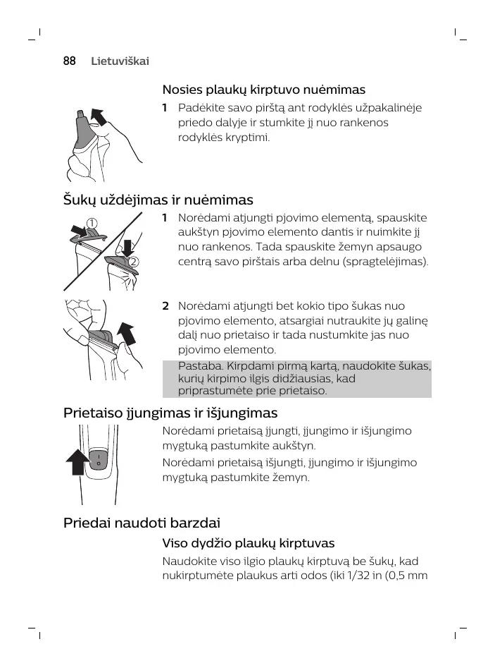 nukirptumėte plaukus arti odos (iki 1/ş2 in (0,š mm
