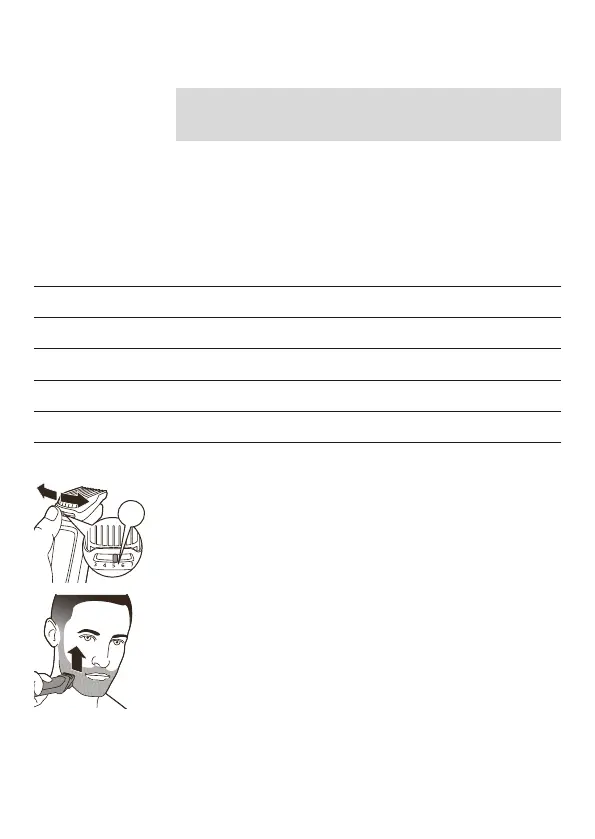 2 Justerbar kam: Trykk lengdevelgeren mot