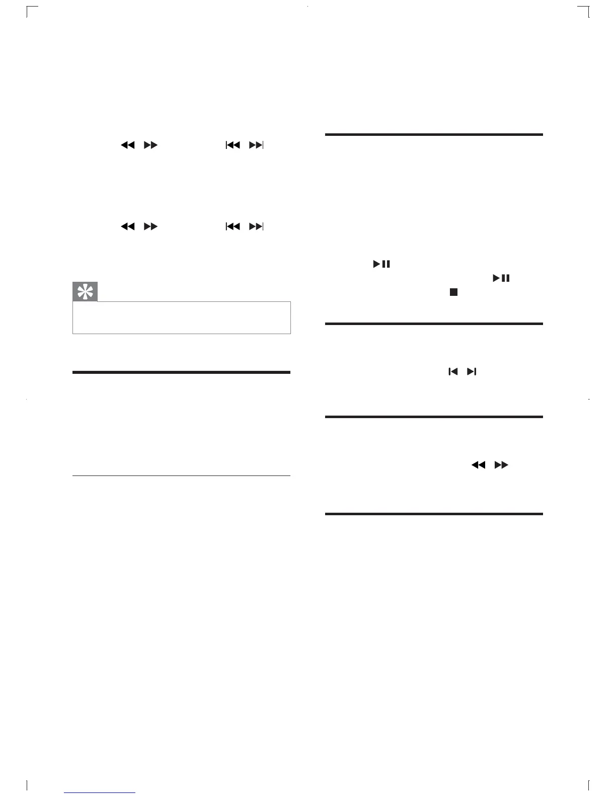 1 During play, press and hold / .