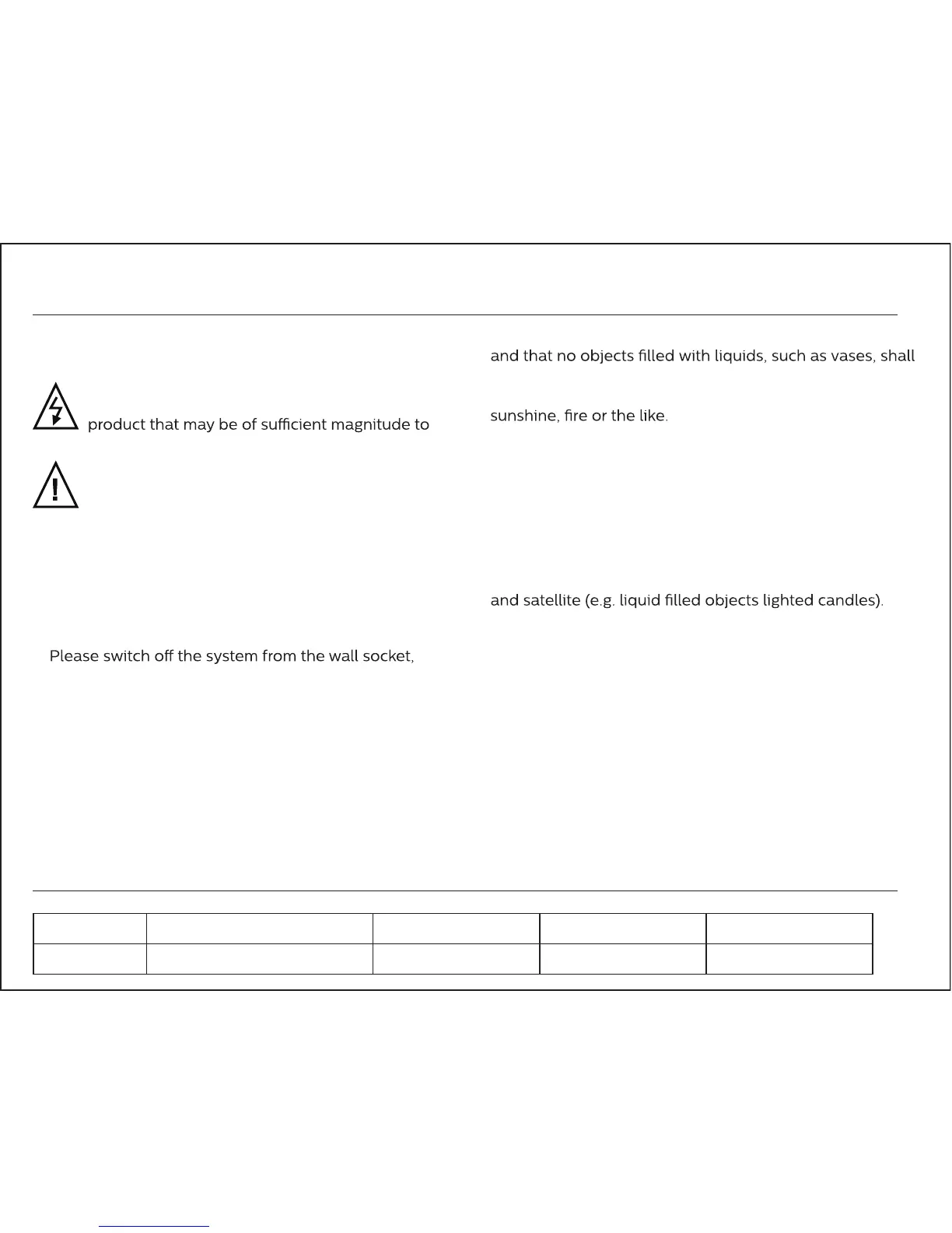 • Do not place any source of danger on the Subwoofer,