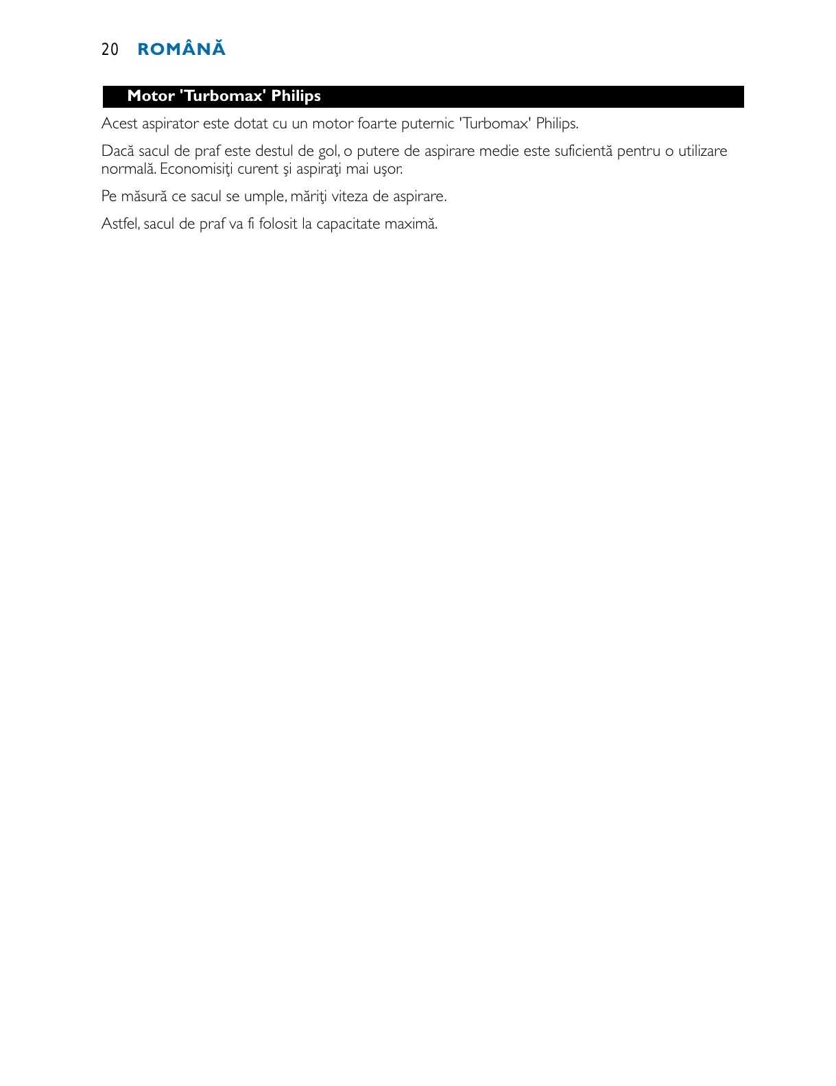 Acest aspirator este dotat cu un motor foarte puternic 'Turbomax' Philips.