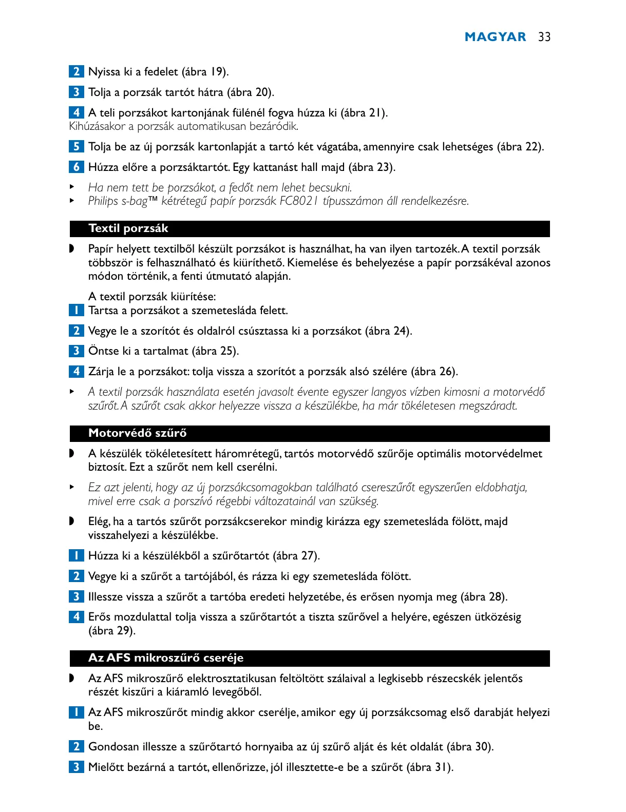 1 Az AFS mikroszűrőt mindig akkor cserélje, amikor egy új porzsákcsomag első darabját helyezi
