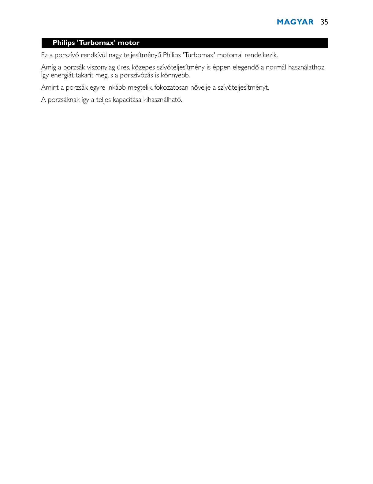 Ez a porszívó rendkívül nagy teljesítményű Philips 'Turbomax' motorral rendelkezik.