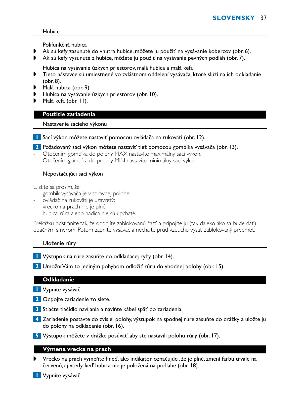 1 Sací výkon môžete nastaviť pomocou ovládača na rukoväti (obr. 12).