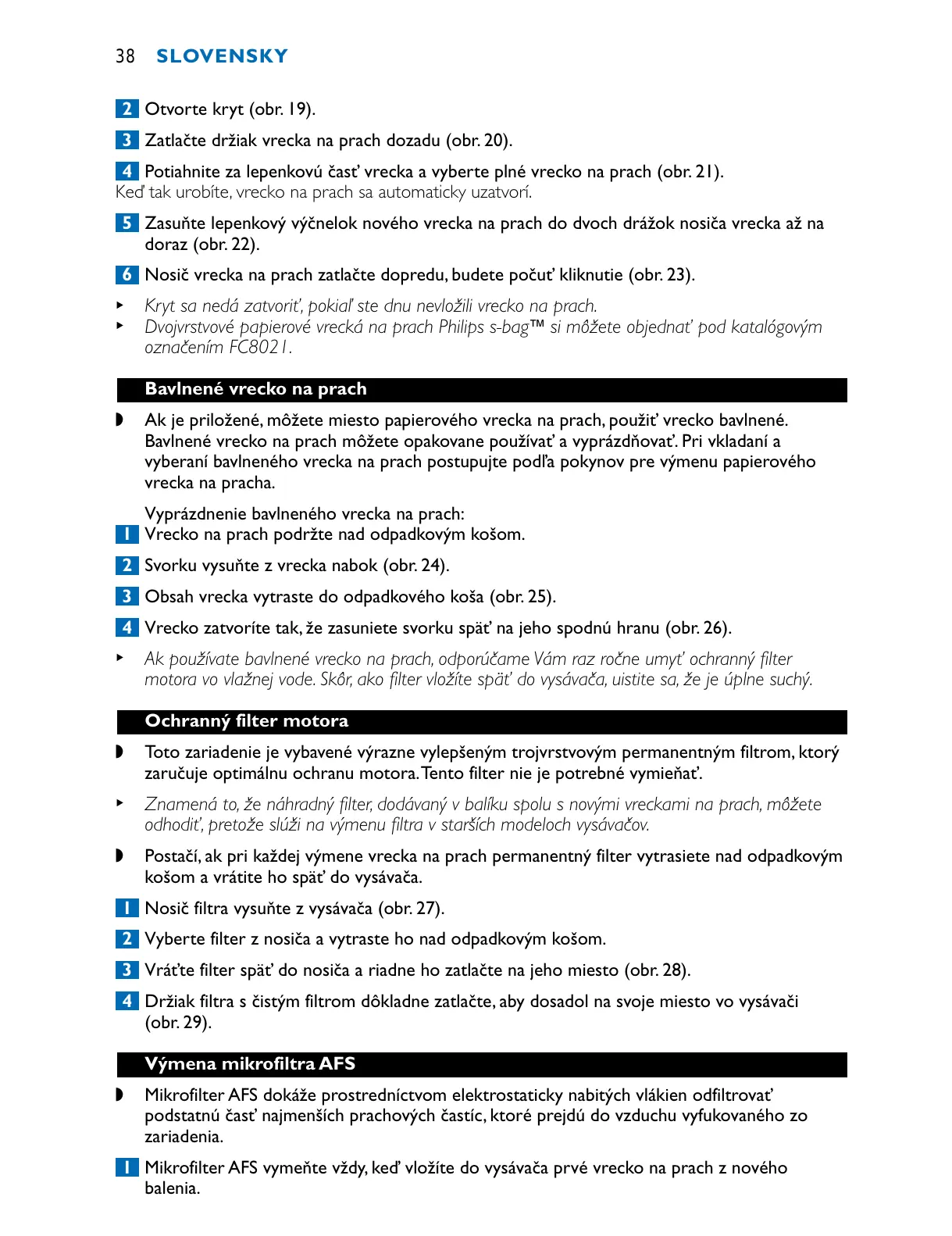 1 Mikrofilter AFS vymeňte vždy, keď vložíte do vysávača prvé vrecko na prach z nového