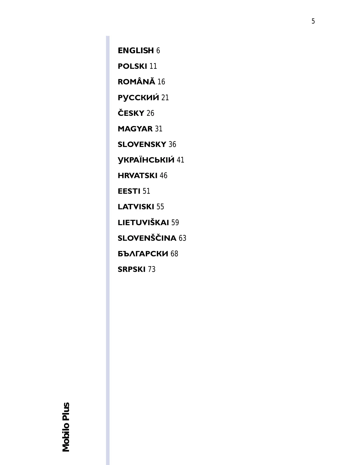 Philips Mobilo Plus - Table of Contents