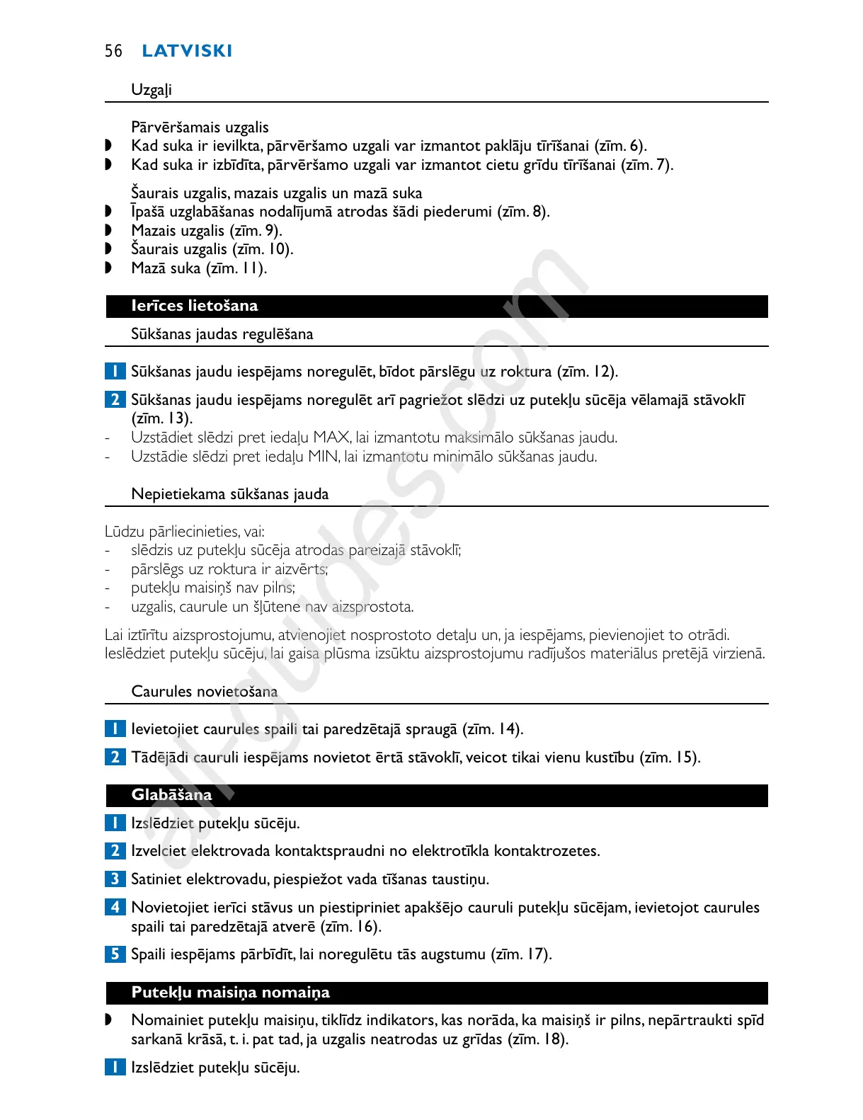 1 Sūkšanas jaudu iespējams noregulēt, bīdot pārslēgu uz roktura (zīm. 12).