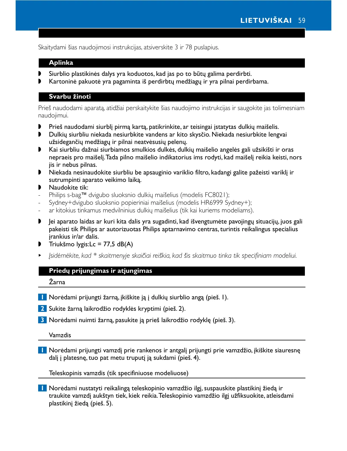 Skaitydami šias naudojimosi instrukcijas, atsiverskite 3 ir 78 puslapius.