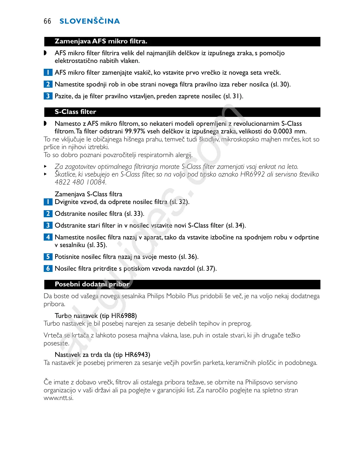 Če imate z dobavo vrečk, filtrov ali ostalega pribora težave, se obrnite na Philipsovo servisno