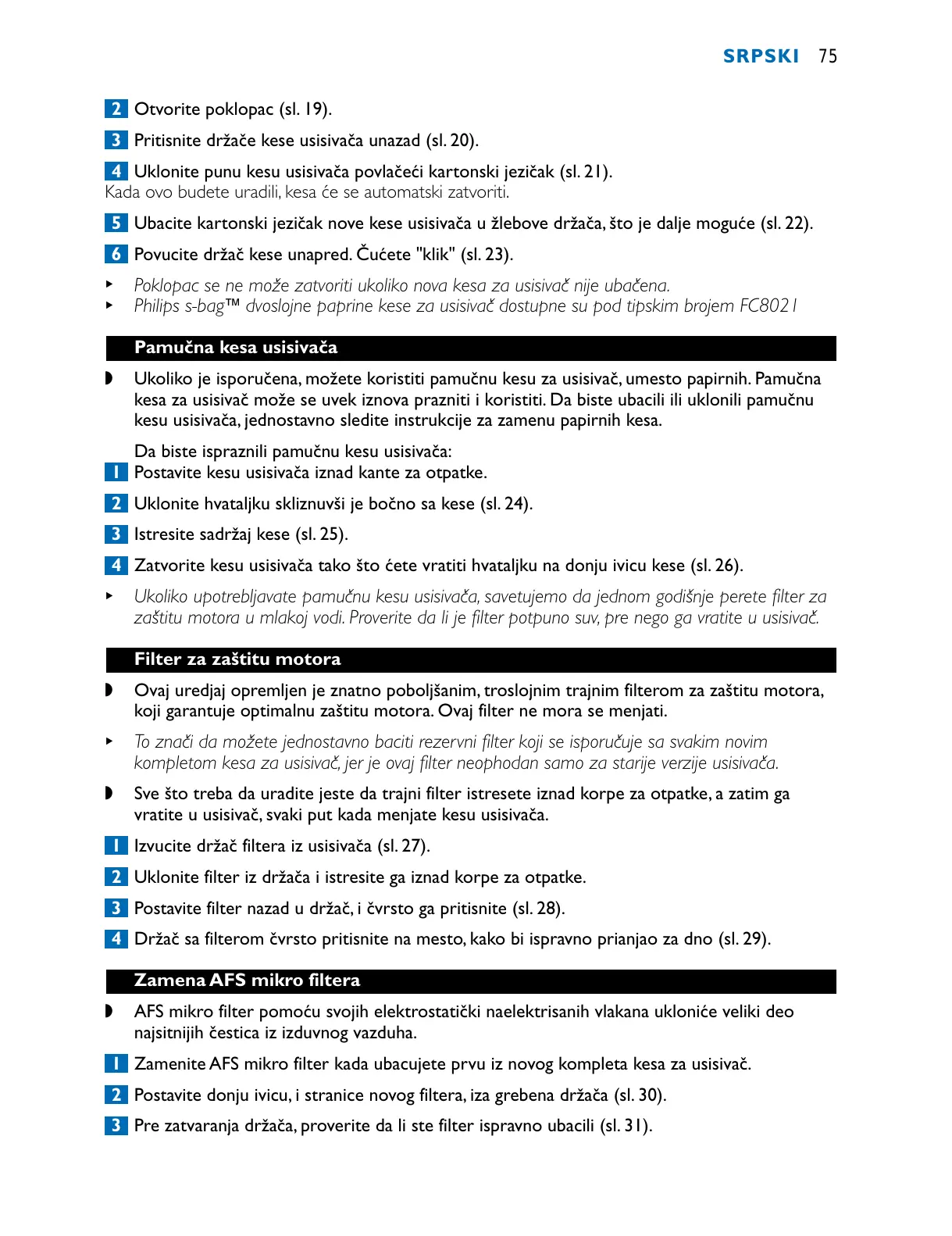Philips s-bag` dvoslojne paprine kese za usisivač dostupne su pod tipskim brojem FC8021