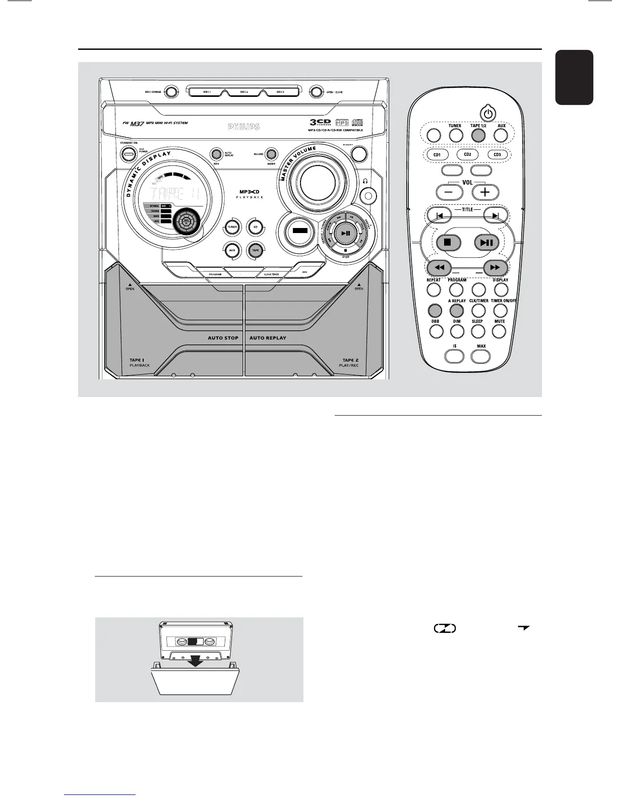 1 Press TAPE (or TAPE 1/2 on the remote