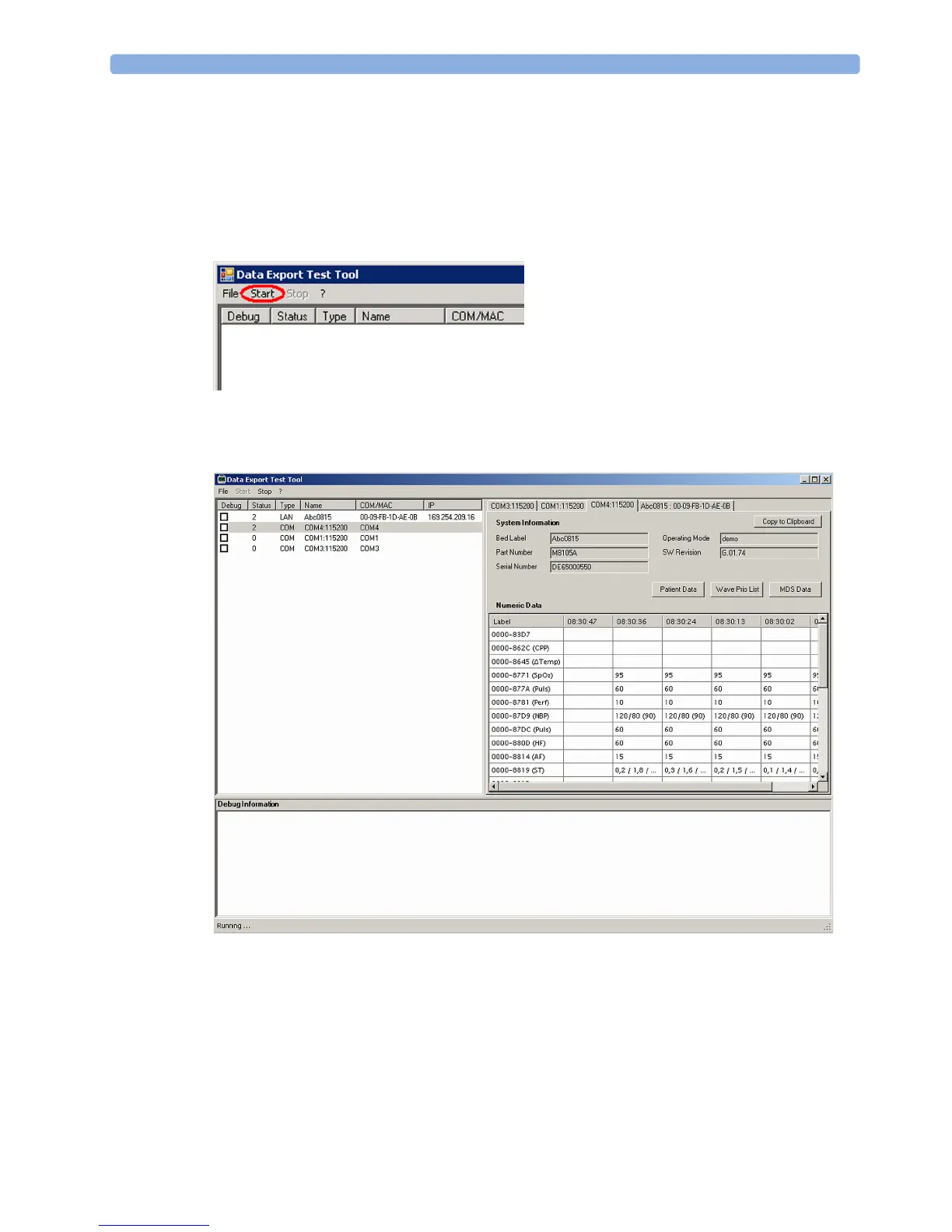 By selecting "Start" from the Menu, the DETT detects any available connected IntelliVue Patient